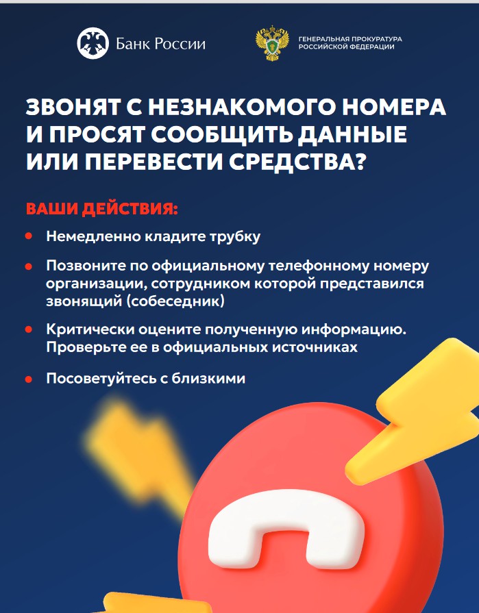 Материалы включают в себя ключевые правила безопасности в цифровой среде, а также алгоритмы поведения в случае поступления звонков от злоумышленников и направлены на профилактику хищения денежных средств граждан мошенническим путем.